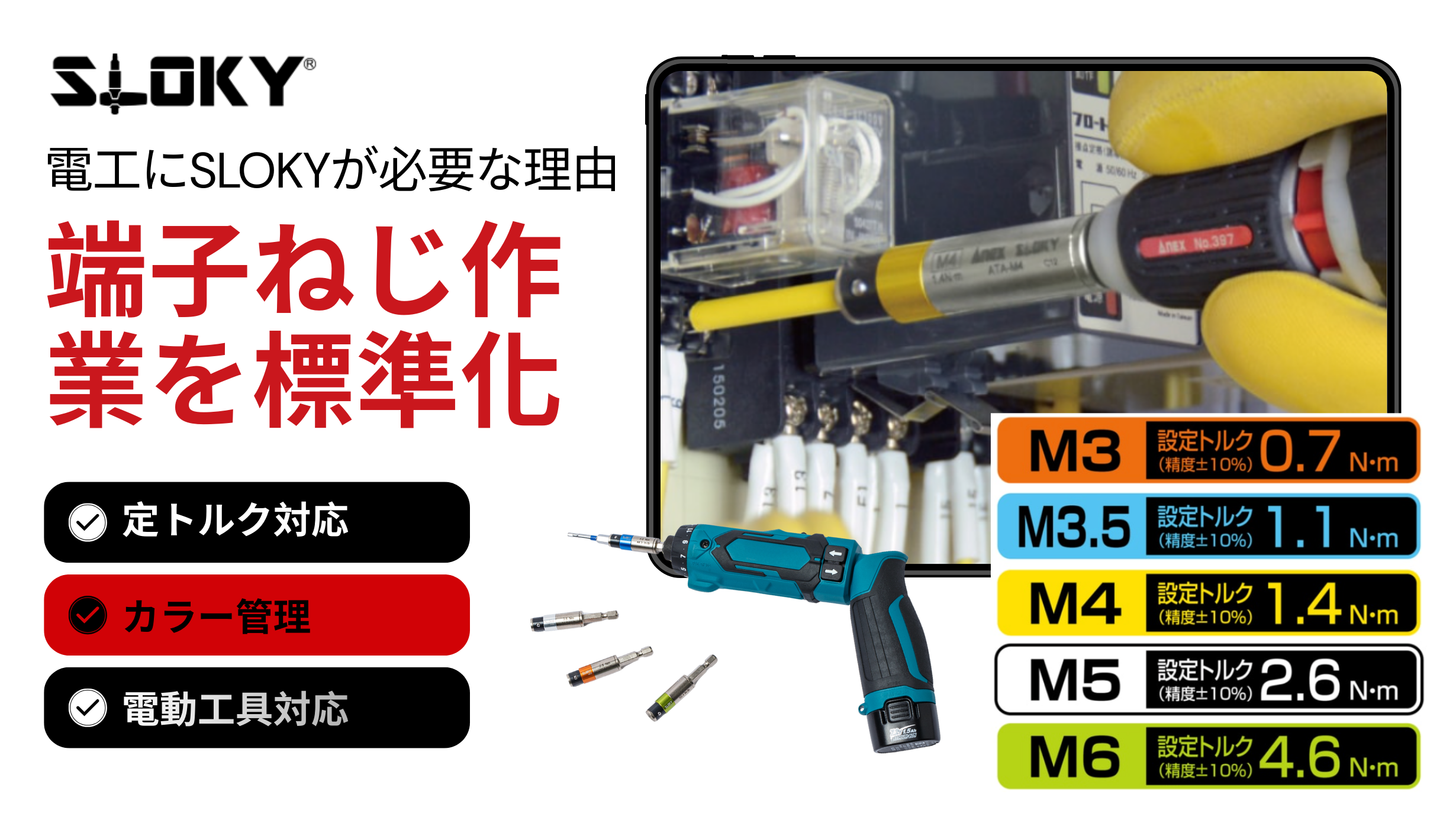 過締め・締め不足を防ぐ要点と、SLOKYのプリセットトルク(色分け)で作業を標準化する方法を解説。