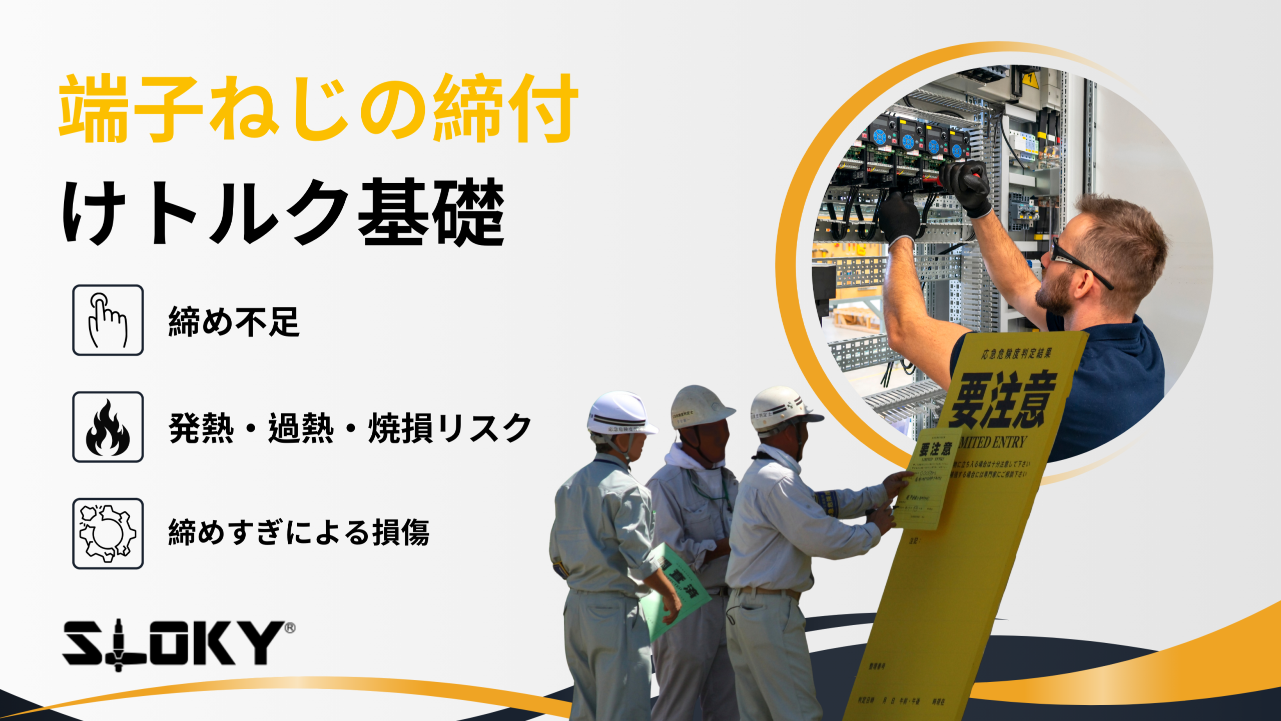 配電盤ネジの締めすぎ・緩みを防ぎ、焼損トラブルを減らすチェックリストとトルクドライバー活用術、さらにSLOKYによる精密トルク管理のポイントを紹介します。